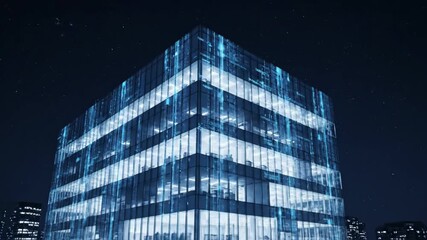 Futuristic Digital Network Overlay On Skyscraper Videos