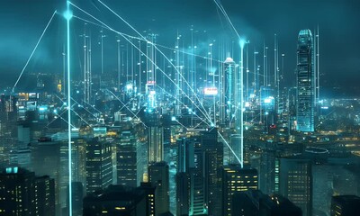 Futuristic Digital Network With Abstract Cityscape Background Videos