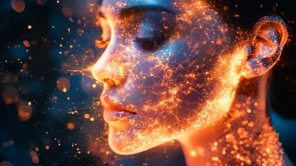 Futuristic Digital Networking Visualization With Faces And Light Videos