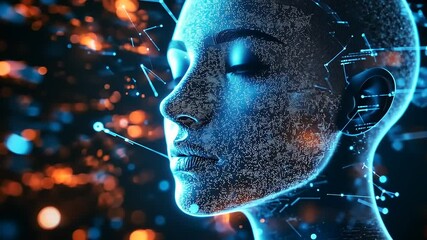Futuristic Digital Networking Visualization With Faces And Light Videos