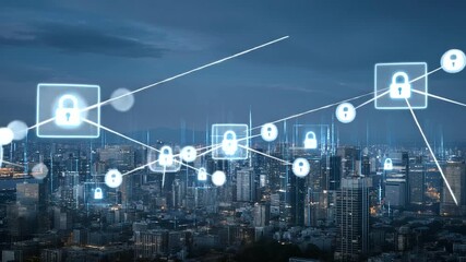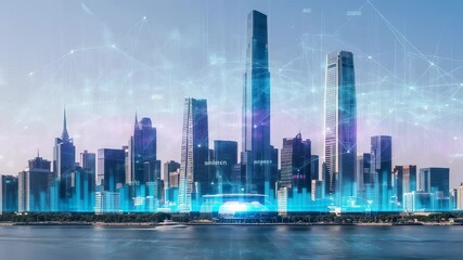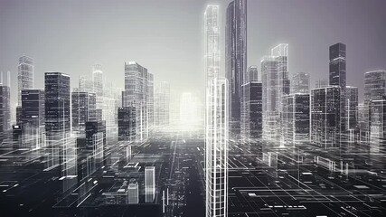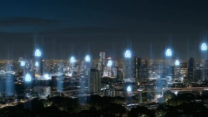 Futuristic Digital Overlay On Expansive Cityscape Skyline Videos