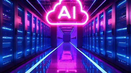 Futuristic Digital Processing Animation Over Server Racks Videos