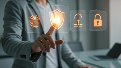 Futuristic Digital Security With Shield And Biometric Interface Videos
