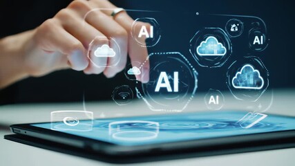 Futuristic Digital Technology Interface With Cloud And Upload Icons Videos