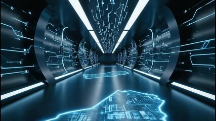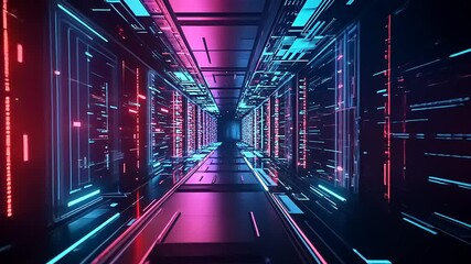 Futuristic Digital Tunnel With Neon Lines And Data Processing Visuals Videos