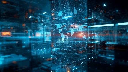 Futuristic Digital World Map Interface With Data Streams Videos