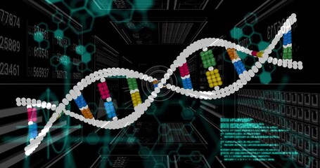 Futuristic Dna Sequence Interface With Code Overlay Videos