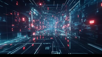 Futuristic Energy Interface Illuminating Digital Corridor Videos