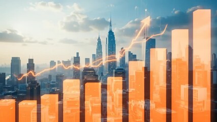 Futuristic Finance Data Visualization With City Overlay Videos