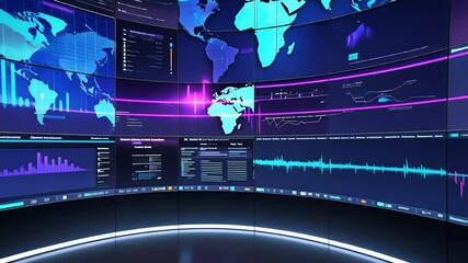 Futuristic Financial Data Charts And World Map Interface Videos