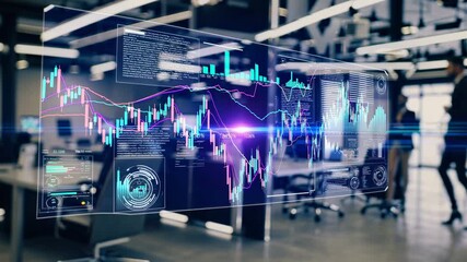 Futuristic Financial Data Interface In Modern Office Setting Videos