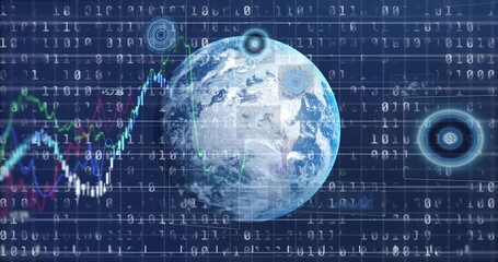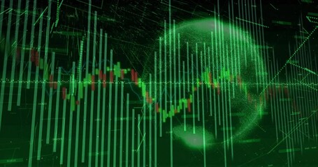 Futuristic Financial Data Overlay With Globe And Grid Videos