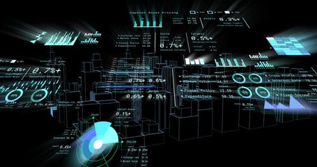 Futuristic Financial Data Visualization Overlaying Cityscape Videos