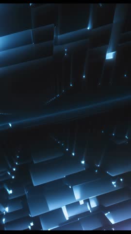 Futuristic Glass Cube Grid Floating Above Clouds At Dawn With Neon Lights Videos