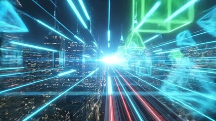 Futuristic Global Data Network Technology Overlay Cityscape Videos