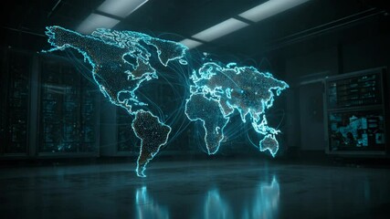 Futuristic Global Interface Displaying Interactive Data Over World Map Videos
