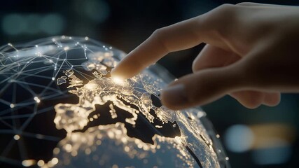 Futuristic Global Network Visualization Of Neon Map Videos