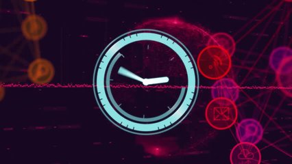 Futuristic Global Network With Clock And Data Processing Overlay Videos