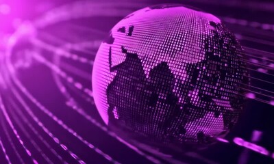Futuristic Globe With Technology Patterns On Purple Background Videos