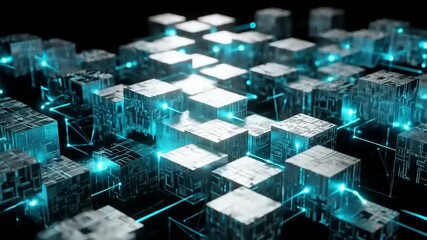 Futuristic Glowing 3d Shapes With Digital Code Background Videos