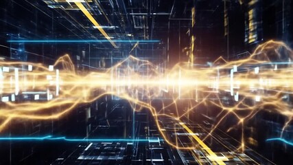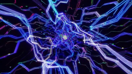Futuristic Glowing Blue Tunnel With Pulsing Digital Streams Videos