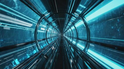 Futuristic Glowing Blue Tunnel With Pulsing Digital Streams Videos