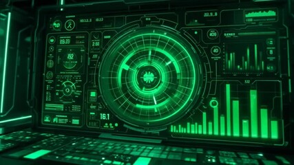 Futuristic Green Digital Interface With Data Visualization Elements Videos