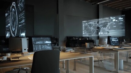 Futuristic Holographic World Map With Data Visualizations Videos