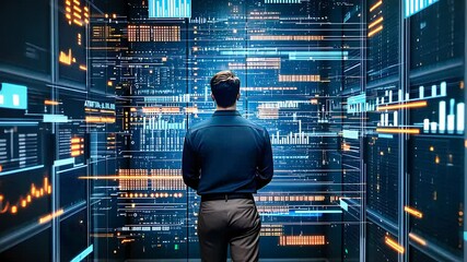 Futuristic Interface In Data Server Room With Digital Analytics Videos