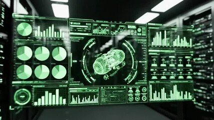 Futuristic Interface In Data Server Room With Digital Analytics Videos