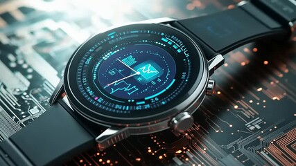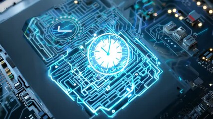 Futuristic Interface With Clock And Circuit Board Elements Videos