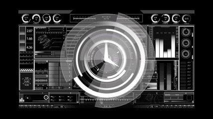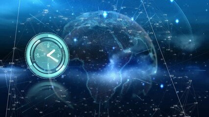 Futuristic Interface With Digital Clock And Global Networks Videos