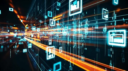 Futuristic Interface With Digital Tech Icons And Data Flow Videos