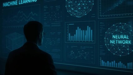 Futuristic Interface With Focused Man Analyzing Data Videos
