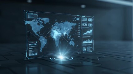 Futuristic Interface With Global Network Overlay And Graphs Videos