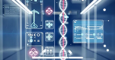 Futuristic Lab Corridor With Pulsing Digital Panel Videos