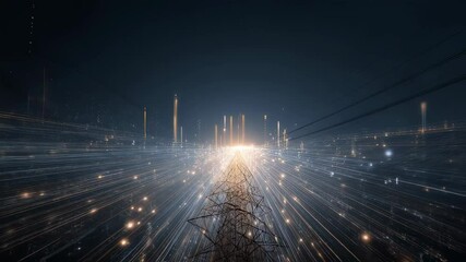 Futuristic Landscape Power Lines And Digital Data Visualization Videos