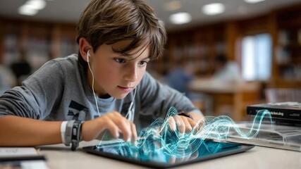 Futuristic Learning Boy Interacting With Digital Education Interface Videos