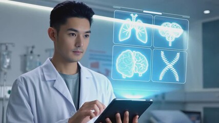 Futuristic Medical Data Interface With Doctor Using Tablet Videos