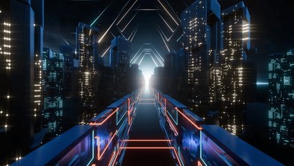 Futuristic Neon Digital Cityscape With Light Effects Videos