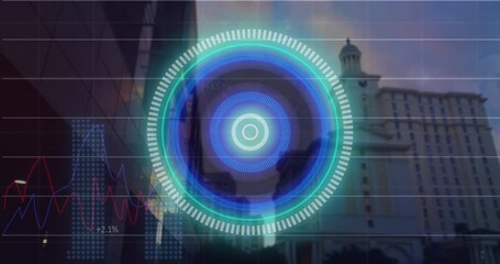 Futuristic Neon Scanner With Data Processing On Screen Videos