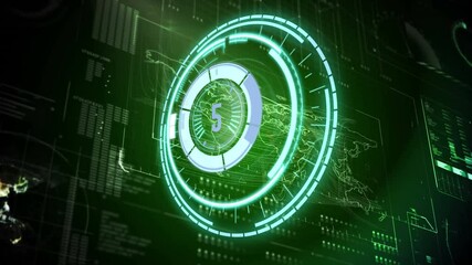 Futuristic Neon Scanner With Data Processing On Screen Videos