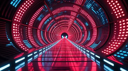 Futuristic Neon Tunnel With Glowing Blue And Red Lights Videos