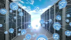 Futuristic Network Icons In High Tech Server Room Videos