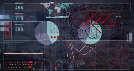 Futuristic Network Interface Over Cityscape Videos