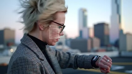 Futuristic Network Interface With Person Using Smartwatch Videos
