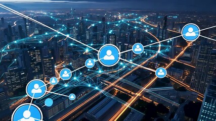 Futuristic Network With Connected Human Icons And Digital Connectivity Videos