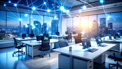 Futuristic Office Building Network Digital Overlay Concept Videos