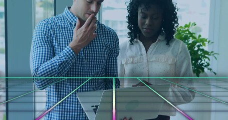 Futuristic Office Workspace With Data Interface Overlay Videos