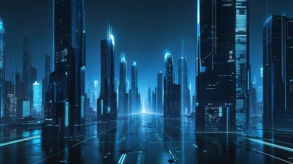 Futuristic Sci Fi Cityscape With Neon Beams Videos